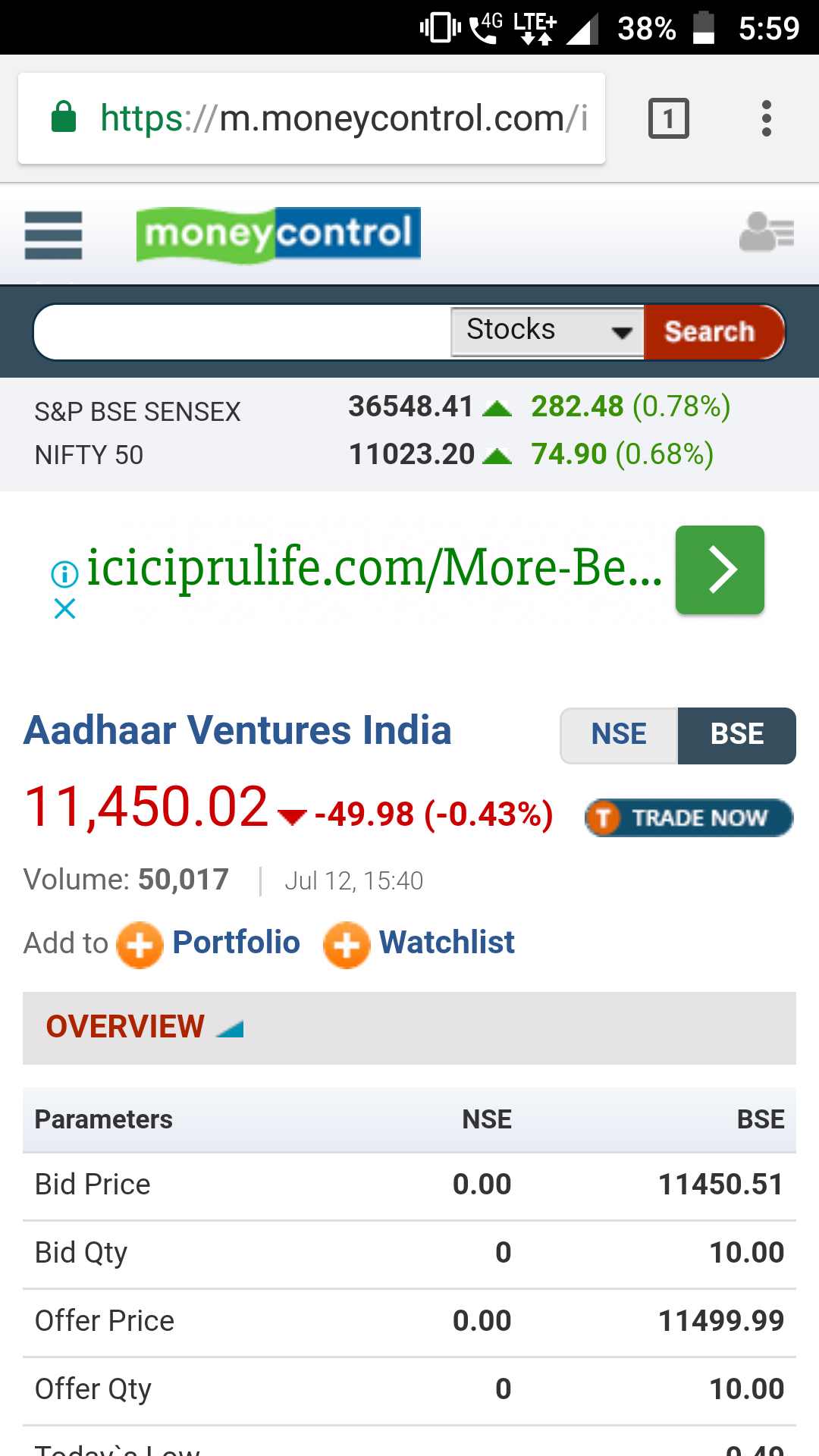 Aadhaar Ventures India Limited engages in trading textile products primarily in India. It is also involved in financing periodical loans; equity participation; leasing; and bill discounting. In addition, the company provides supervisory and consultancy services; and engages in investing, infra, and other operations. The company was formerly known as Prraneta Industries Limited and changed its name to Aadhaar Ventures India Limited in November 2011. Aadhaar Ventures India Limited was incorporated in 1995 and is based in Surat, India.
